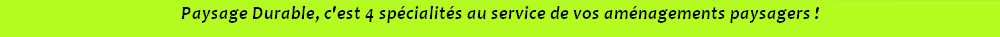 De la conception à la réalisation et l'entretien, Paysage Durable offre un éventail complet de réponses à tous vos projets, dans le respect de votre budget. Bénéficiez de 50% de crédits d'impots sur vos travaux d'entretiens.