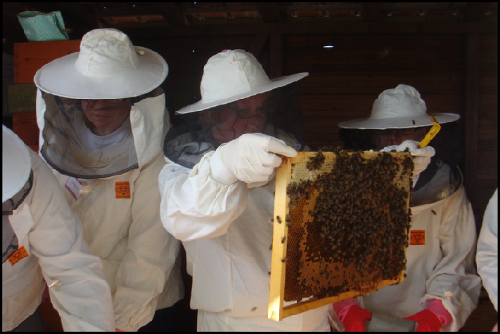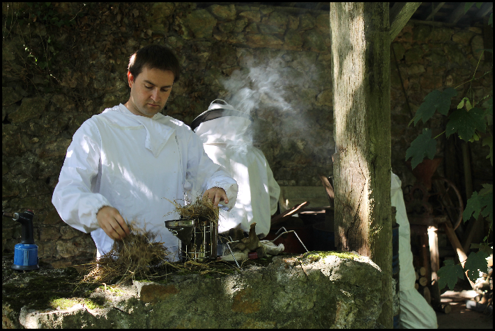 Lors de la venue de l'apiculteur, vous pouvez bien naturellement assister aux différents travaux au cours de la saison, port de la combinaison exigée!